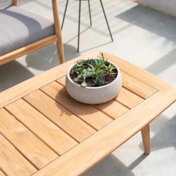 La Dana Coffee Table combine lignes épurées et beauté naturelle du teck pour créer un mobilier d’extérieur élégant et fonctionnel. Elle s’accorde parfaitement avec les autres éléments de la collection Dana et constitue un espace convivial pour prendre un café ou se détendre en plein air. Dimensions: largeur 1300 mm × hauteur 400 mm × profondeur 700 mm. Garantie: 10 ans