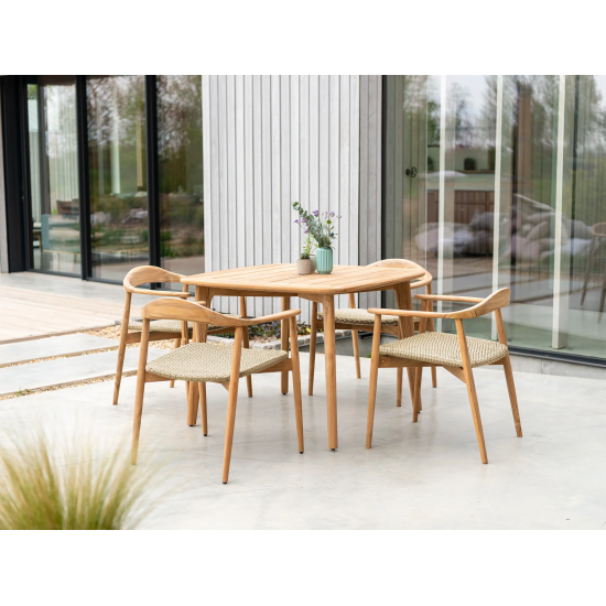 L’ensemble Dana Teak Wood 4 Seater Dining Set allie confort, durabilité et style pour vos repas en plein air. La table carrée Dana Dining Table mesure 1000 mm de largeur, 740 mm de hauteur et 1000 mm de profondeur, offrant une surface conviviale pour les repas en famille ou entre amis. Les 4 chaises Dana avec assise en corde tressée, chacune de 625 mm × 725 mm × 565 mm, apportent une assise confortable et un design raffiné. Fabriqué en teck massif — un bois réputé pour sa résistance naturelle aux intempéries et sa longévité — cet ensemble est parfait pour les jardins, terrasses ou balcons. La combinaison du bois chaleureux et des sièges en cordes crée une harmonie visuelle et une atmosphère accueillante. Que ce soit pour un déjeuner en plein air ou un dîner sous les étoiles, cet ensemble allie fonctionnalité et élégance. La garantie de 10 ans témoigne de la qualité et de la durabilité de ces meubles d’extérieur.