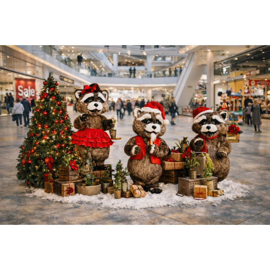 Raccoon Band est une décoration animatronique de grande taille qui apporte musique et animation aux décors de Noël. Les ratons laveurs, vêtus de costumes de Noël faits main, chantent et se déplacent en parfaite synchronisation avec la musique. Les mouvements de la bouche et des sourcils renforcent le réalisme et captivent le public.
