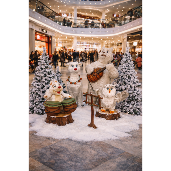 Winter Forest Band est une décoration animatronique immersive qui recrée l’atmosphère magique d’une forêt d’hiver en musique. Les animaux interagissent, chantent et se déplacent de manière synchronisée au rythme des mélodies festives. Le contrôle par le son garantit des mouvements fluides et réalistes.