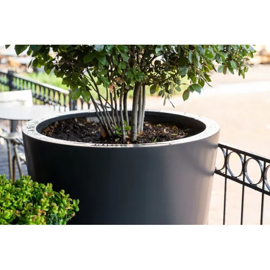 Le bord supérieur de ces jardinières est retourné deux fois, ce qui leur donne une belle apparence intemporelle. Les jardinières sont fabriquées en fibre de verre renforcée de haute qualité. Puisque le renfort a été étendu aux coins, ces coins ne peuvent pas se déchirer. La jardinière est colorée sur toute la matière et gardera donc sa couleur. En standard, toutes les jardinières en fibre de verre sont livrées en RAL 7021.