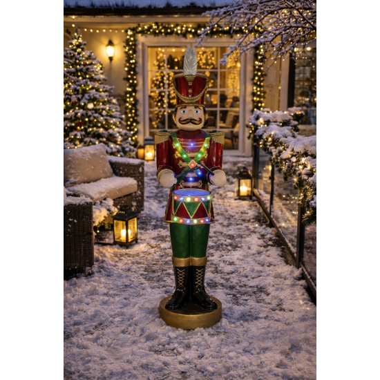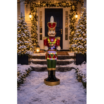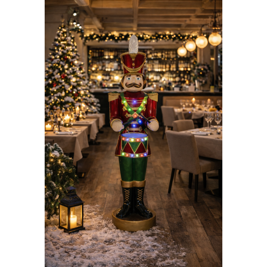 Avec son uniforme traditionnel et son éclairage LED, elle rappelle l’ambiance des parades de Noël classiques et des célébrations hivernales.