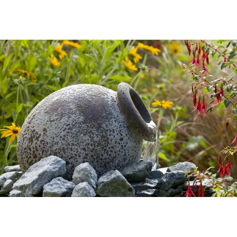 Ensemble cascade Ubbink Orange Acqua Arte. L'eau s'écoule d'une amphore à l'aspect antique. Ensemble complet avec pompe, réservoir et treillis métallique.