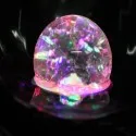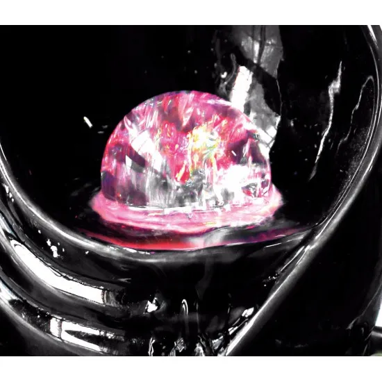 W od a coule zp du bas de la boule de cristal la faisant tourner . La boule est éclairée par des diodes LED qui, lorsqu'elles sont tournées, projettent une merveilleuse couleur autour de la fontaine, surtout la nuit.