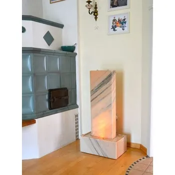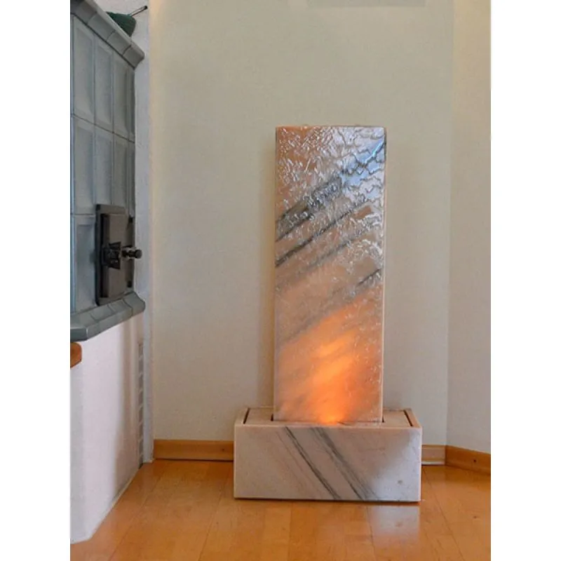 Les jeux de lumière et le doux bruit de l'eau ont un effet très apaisant et relaxant sur votre bien-être.Asseyez-vous et profitez du moment pendant que la fontaine lumineuse Benfica humidifie l'air et lie la poussière fine.Cette fontaine d'intérieur est fabriquée à la main en pierre 100% naturelle.Produit fabriqué en Autriche