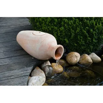 Il s'agit d'une carafe filtrante en terre cuite en tant qu'ensemble complet avec fonction pompe et filtre, bénéfique pour les bassins jusqu'à 3000 litres (sans poisson) et 1500 litres avec poisson.