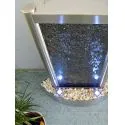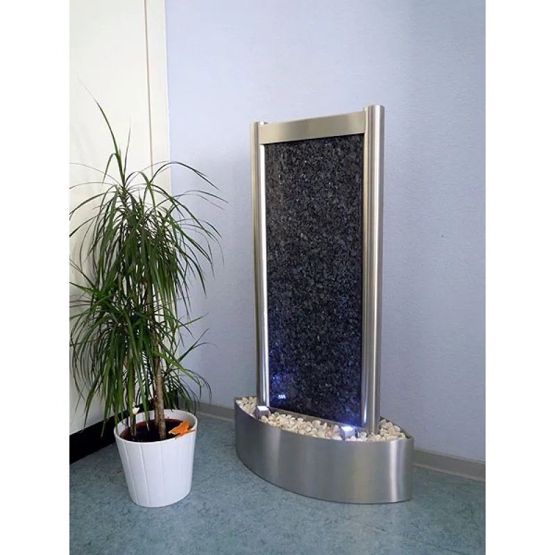 Combinaison intéressante de granit et d'acier inoxydable. L'excellente fabrication des composants et des équipements de haute qualité technique garantissent une résistance à l'eau remarquable, qui a sa place dans les pièces modernes. Que ce soit dans le hall, le bureau ou le salon, avec l'éclairage LED disponible en option, le mur d'eau Elenora est définitivement un accessoire exclusif.