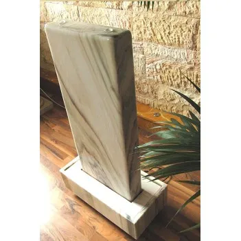Il repose sur le sol avec une base en marbre massif, offrant une vue fascinante dans les espaces de bureau et de vie. Les jeux d'eau et de lumière, complétés par un marbre noble et de grande qualité, incitent à l'admiration et à la détente. L'effet apaisant qui émane de cet objet aquatique est, dans le vrai sens du terme, une lueur d'espoir lorsqu'il s'agit de soulager le stress ou simplement d'être de bonne humeur. Ceci est assuré par le doux bruit de l'eau, ainsi que par la lumière chaude et tamisée qui brille à travers le noble marbre de Sölker.