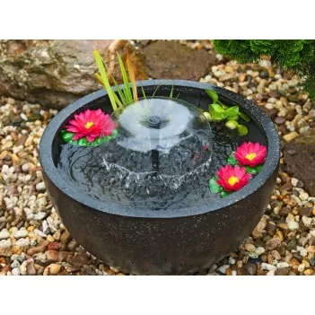 Eleganckie, okrągłe mini basen,staw na tarasie, balkonie lub w pomieszczeniu. Gotowy do użycia zestaw z pompą, dzwon z wody głowicy natryskowej, 3 czerwone sztuczne lilie wodne i torba roślin wodnych.