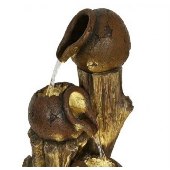 Cette fontaine est idéale pour les jardins, terrasses et espaces commerciaux. Son design combine une imitation bois et des pots classiques, s’adaptant à différents styles. L’écoulement en cascade apporte un effet apaisant et décoratif.