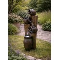 Cette fontaine apporte une ambiance relaxante grâce à son écoulement d’eau continu. Son design imite un tonneau en bois avec des pots.