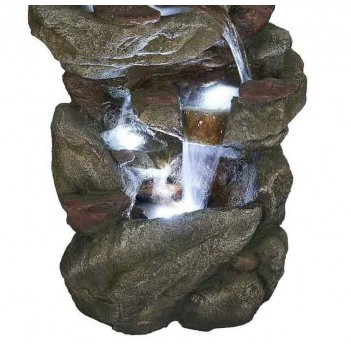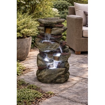 Hexham Boulder Falls est une fontaine de jardin décorative inspirée des formations rocheuses naturelles avec cascade sur quatre niveaux. Dimensions L 40 x W 31 x H 80 cm. Fabriquée en résine résistante. Éclairage LED intégré pour une ambiance nocturne.