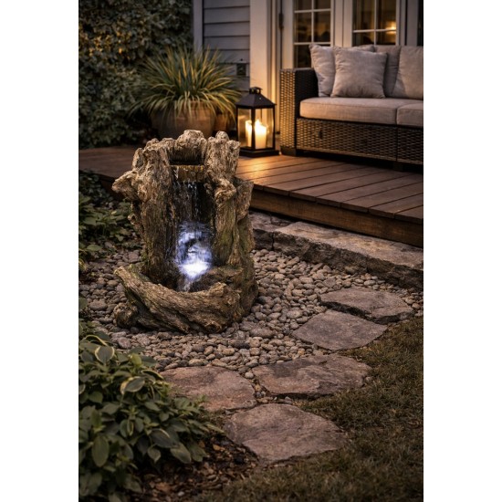 La fontaine Woodland Waterfall est une décoration de jardin inspirée de la nature, idéale pour terrasse ou jardin. Son effet pierre réaliste et son écoulement d’eau apaisant créent une ambiance relaxante. L’éclairage LED intégré met en valeur la cascade la nuit. Dimensions : L 35 x W 35 x H 52 cm.
