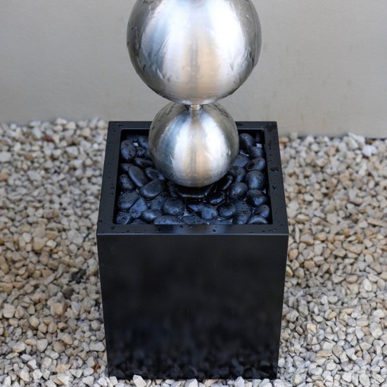 La colonne d’eau cascade à sphères (hauteur 131 cm × largeur 30 cm × profondeur 30 cm) est une fontaine moderne en acier inoxydable avec finition argentée. Les quatre niveaux sphériques créent un écoulement fluide et apaisant. Le système autonome comprend un réservoir et une pompe 800 LPH alimentée sur secteur, ce qui permet une installation simple dans le jardin, sur une terrasse ou dans une cour.