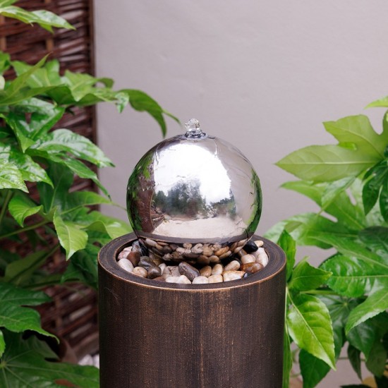 La fontaine Wildflower (86 × 28 × 28 cm, poids 5,9 kg) associe une sphère ajourée à un socle colonne pour créer une silhouette élégante et moderne. Son motif floral découpé au laser apporte une touche naturelle. L’éclairage LED intégré met en valeur l’écoulement de l’eau en soirée. Système autonome facile à installer dans tout espace extérieur.