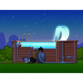 Un élément décoratif moderne et noble pour la piscine et souligner l'atmosphère de détente et de bien-être. Fabriqué en acrylique transparent. La conception spéciale et la haute qualité garantissent un rideau d'eau uniforme fourni par la circulation du système de filtration de la piscine.