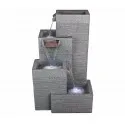Les piliers rectangulaires d'eau grise ont une surface rainurée très tactile , les colonnes ont des extrémités pointues et le seul élément qui s'éloigne des angles droits est le flux d'eau triangulaire.