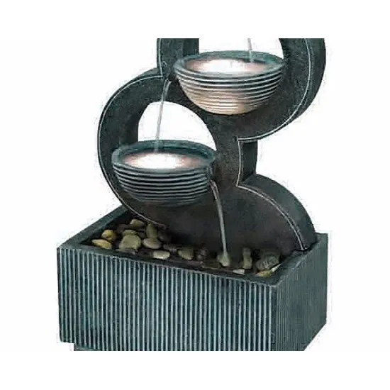 Cette fontaine est fascinante à regarder lorsqu'elle est utilisée car l'eau est pompée à travers le centre de la pièce et se déverse dans chaque bol puis dans la base.