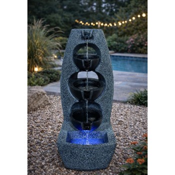 Fabriquée en résine de haute qualité, la fontaine imite l’aspect de la pierre naturelle tout en restant légère et résistante aux conditions extérieures.