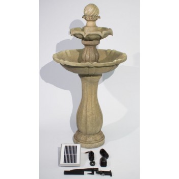 La fontaine Antique Solar Imperial Round Tiered avec éclairage LED est une fontaine de jardin élégante à trois niveaux finition effet pierre sable. Fabriquée en polyresine résistante pour l’extérieur. Dimensions : hauteur 110 cm, largeur 52 cm, profondeur 52 cm. Fonctionne à l’énergie solaire avec réservoir intégré et pompe 250 LPH incluse. L’éclairage LED blanc sublime l’écoulement de l’eau le soir.