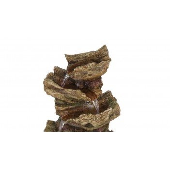 L’éclairage LED intégré met en valeur l’écoulement de l’eau et la texture naturelle de la fontaine pendant la nuit. Fabriquée en résine durable imitant l’aspect du bois naturel, la structure est résistante aux conditions climatiques extérieures. Cette fontaine constitue ainsi un élément décoratif idéal pour les jardins, terrasses, patios ou espaces extérieurs d’hôtels.