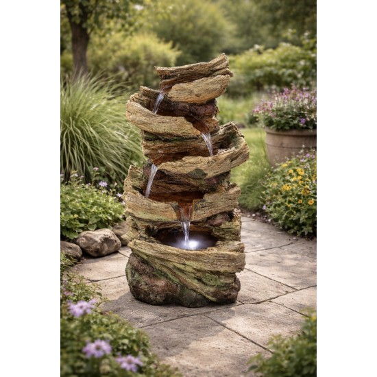 Solar Woodland Falls est une fontaine de jardin élégante conçue pour recréer l’ambiance d’un paysage forestier naturel. Sa structure en cascade imite un barrage en bois où l’eau s’écoule doucement d’un niveau à l’autre, produisant un son relaxant et un effet visuel attrayant.