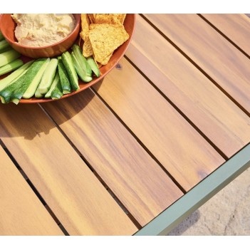 Le Genoa Corner Lounge Set comprend 1 canapé d’angle (5 places) et 1 table basse. Chaque module du canapé mesure 1450 mm de largeur × 750 mm de profondeur × 700 mm de hauteur, tandis que la table basse fait 600 mm × 1060 mm × 420 mm (L × P × H). Structure en aluminium vert olive et coussins en polyester 230gsm pour confort et résistance aux intempéries. Garantie : 3 ans.