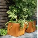 Un pot de fleurs moderne en acier Corten (acier inoxydable) qui s'harmonise parfaitement avec votre intérieur et votre jardin.