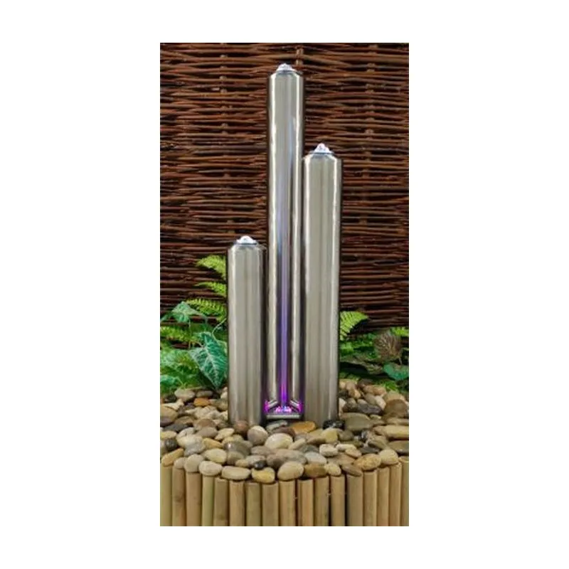 Fontaine avancée, acier brossé, 3 tuyaux, LED, 156 cm