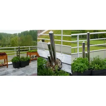 Cette fontaine est livrée avec un réservoir conçu pour être placé dans le sol. Si vous ne souhaitez pas faire cela et souhaitez placer cette fontaine à l'intérieur, vous pouvez mettre le réservoir de la fontaine dans un pot et elle est alors parfaite pour une utilisation en intérieur, à la maison ou au bureau. Nous proposons de tels pots de fleurs.