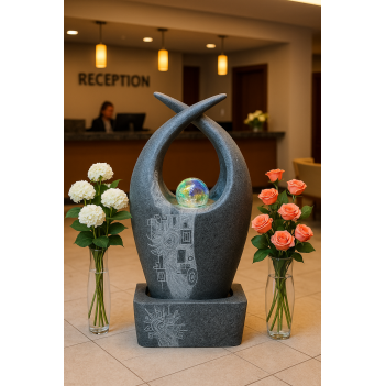 Cette fontaine saisissante est équipée d'éléments sculptés à la main rappelant le style Art nouveau, rappelant notamment l'artiste Klimt et sa célèbre pièce "Le Baiser". Les bras lisses et arqués de la fontaine ressemblent aux bras tendus de la constellation d'Orion, dont ce produit tire son nom. Cette fontaine a été magnifiquement conçue pour former un merveilleux point focal dans tout jardin plus moderne.
