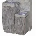 Complétez votre jardin moderne avec cette superbe fontaine à eau. L'eau s'écoule sur quatre niveaux constitués de vasques, puis s'écoule dans un réservoir intérieur, d'où elle remonte vers le haut. La texture des quatre bols ressemble au granit, tandis que le socle sur lequel ils reposent ressemble à une pierre lisse et polie.
