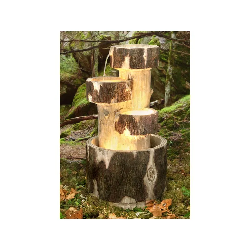 - de style rustique, la fontaine est conçue pour donner l'impression d'avoir été taillée dans des bûches, ce qui en fait le complément parfait aux jardins naturels.