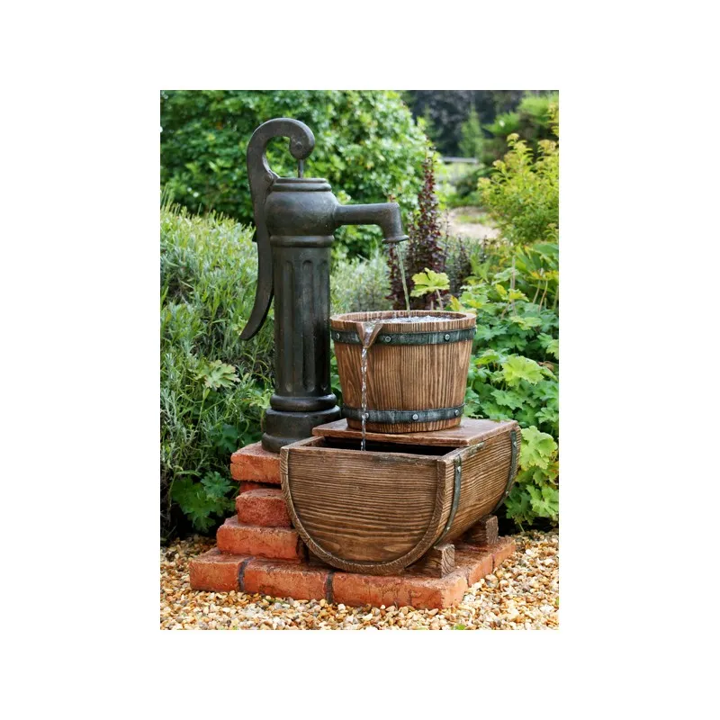 Une fontaine à eau traditionnelle deviendra un excellent ajout à votre maison ou votre jardin. Il a été fabriqué en résine organique de haute qualité et ressemble à du bois, du métal et de la pierre. Les LED sont cachées dans les deux seaux, ce qui fait de la fontaine un délice même la nuit.