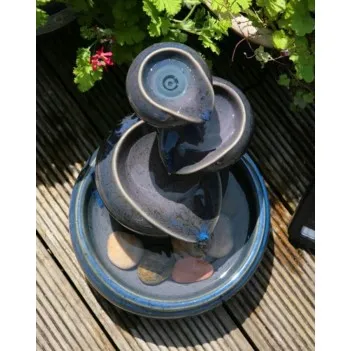 Fontaine, cascade deau, pots en argile, énergie solaire