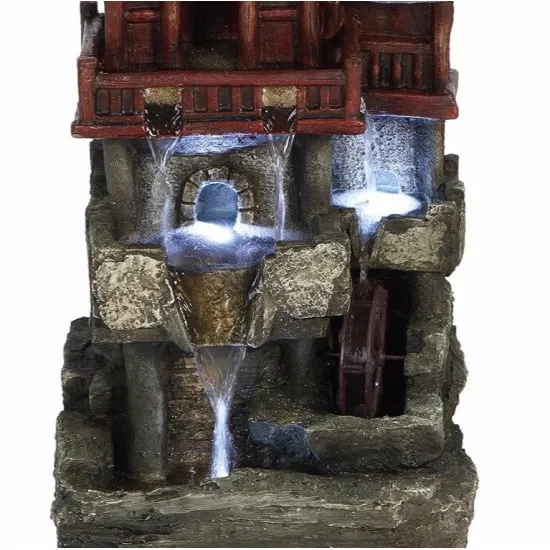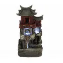 Une fontaine à eau orientale est pleine de mouvement et de son, c'est un excellent ajout à toute maison ou jardin, qu'elle ait ou non un thème similaire. À l'étage se trouve une maison de style pagode distinctive, avec de l'eau qui coule du balcon dans les ruisseaux en contrebas, l'un tombant directement dans le bassin à la base, tandis que l'autre est représenté dans une peinture travaillant sur une roue à aubes. Toute cette action est éclairée par des lumières LED, ce qui en fait une attraction incroyable à la fois pendant la journée et le soir lorsque les lumières se combinent avec le bruit de l'eau pour créer une scène merveilleuse. Comme il s'agit d'une fonction autonome, aucune alimentation en eau externe n'est requise et un cordon d'alimentation de 10 mètres est inclus avec le transformateur basse tension pour offrir le plus grand choix d'emplacements.