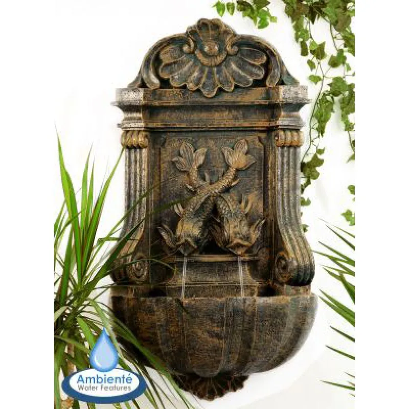 Cette jolie fontaine murale sera un ajout élégant à votre jardin. L'eau recircule et verse doucement le poisson dans le réservoir en dessous, créant une bonne ambiance.