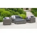 Monte Carlo est une collection de meubles produits dans une usine de Cebu. Le rotin synthétique texturé de 3 mm donne une sensation naturelle, tandis que les coussins rembourrés gris foncé complètent le tissage gris.