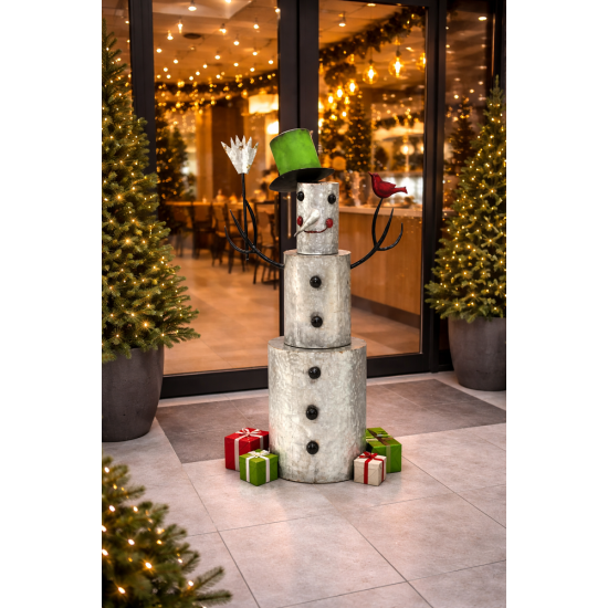 Ce bonhomme de neige en métal avec éclairage LED est une décoration de Noël remarquable. Avec des dimensions L 76 x W 40 x H 126 cm, il convient parfaitement aux centres commerciaux, hôtels et jardins. Fabriqué en métal résistant, il supporte les conditions extérieures et peut être utilisé en intérieur comme en extérieur. L’éclairage LED met en valeur les détails et assure une visibilité optimale la nuit.