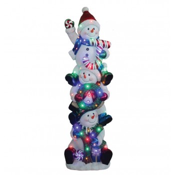 Le modèle Stacked Joy Snowmen (45 LED) possède des dimensions L 48 x W 39 x H 152 cm et est équipé de 45 LED. La décoration est fabriquée en fiberglass resin, autoportante et adaptée à une utilisation intérieure et extérieure.