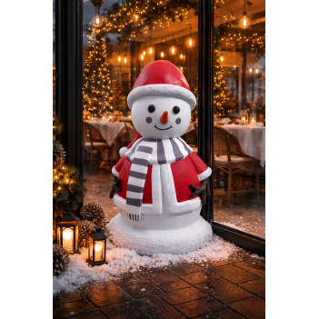 Fabriquée en résine fibre de verre durable, cette décoration résiste aux conditions extérieures. Elle convient à une utilisation intérieure et extérieure : jardins, terrasses, entrées de magasins ou hôtels. Elle s’associe parfaitement avec d’autres décorations de bonhommes de neige.