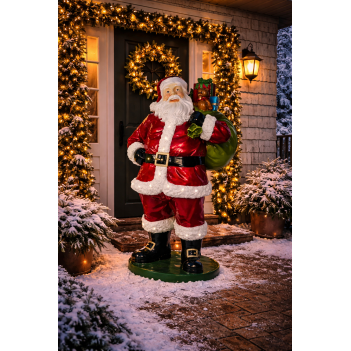 Cette figure classique de Père Noël apporte une ambiance chaleureuse aux décorations de Noël. Les LED intégrées offrent un éclairage doux idéal pour les scènes hivernales. La résine en fibre de verre assure robustesse et durabilité. Adaptée aux jardins, terrasses et espaces commerciaux.