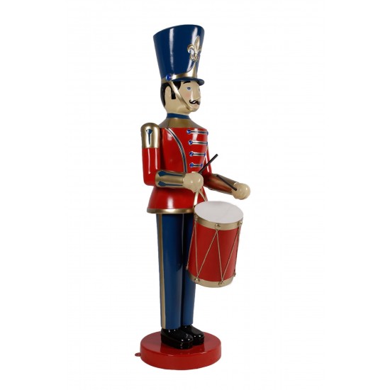 Toy Soldier with Drum (Red/Blue) fait partie de la collection Nutcrackers & Toy Soldiers, fabriquée à partir de résine fibre de verre résistante aux intempéries et de métal durable