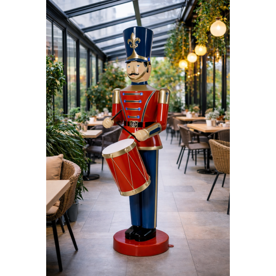 Cette figurine de soldat avec tambour constitue un élément décoratif remarquable pour les vitrines, centres commerciaux, hôtels ou événements hivernaux. Grâce à sa hauteur de 184 cm, elle attire immédiatement l’attention et peut devenir la pièce centrale d’une décoration de Noël.