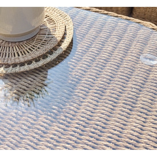 L’ensemble Palermo Empress Lounge Corner Set allie confort, style et qualité pour créer une zone de détente élégante dans le jardin, sur la terrasse ou autour de la piscine. Tressé à la main avec du rotin synthétique de 6 mm sur une structure en aluminium léger mais robuste, ce set est conçu pour résister aux intempéries tout en offrant une esthétique raffinée. Les généreux coussins en tissu Olefin sont doux, résistants aux rayons UV et sèchent rapidement, ce qui en fait un choix pratique pour un usage extérieur régulier. What’s included : un canapé 2 places, une chaise d’extrémité, une table basse à plateau en verre trempé et une table d’appoint. Cet ensemble est idéal pour recevoir des amis, se détendre en famille ou profiter d’un moment de tranquillité à l’extérieur. Les matériaux résistants et l’entretien minimal garantissent une durabilité optimale. L’ensemble est couvert par une garantie de 5 ans, gage de qualité et de tranquillité d’esprit.