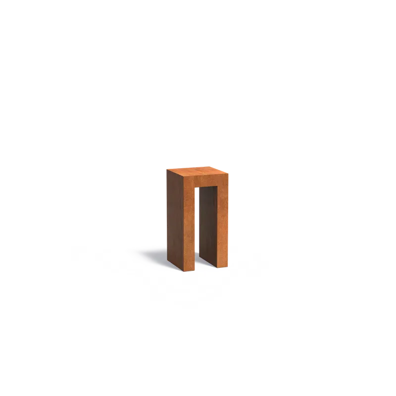 décoration ou autre article jusqu'à 150 kg. Chez Corten Steel, nous proposons également nos socles sous forme de bloc en U. Le bloc en U peut être utilisé comme entrepôt de bois. Nos socles vous permettent d'exposer joliment vos différents objets.L'Acier Corten est un acier résistant qui a une particularité :
