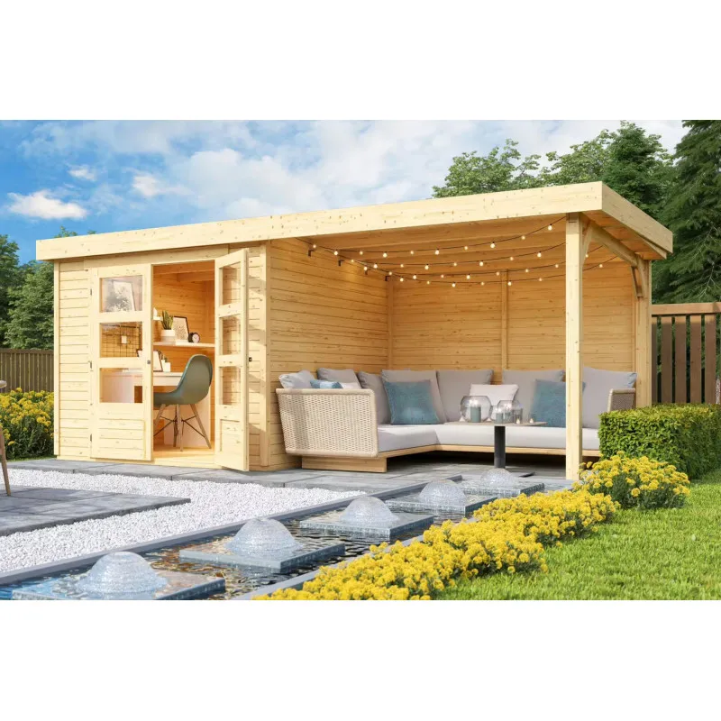 Domek ogrodowy Askola 5 bezbarwny, szerokość 2,80 m, przedłużony dach, 2 ściany lamelowe