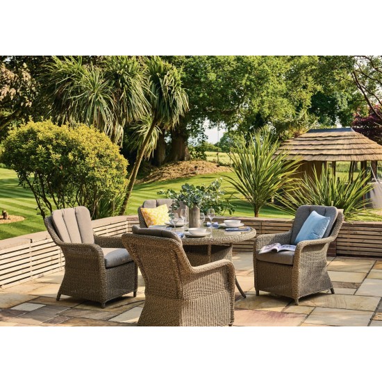 Arlington Weave Round Dining Table 1.2m to funkcjonalny i stylowy mebel ogrodowy, łączący elegancki design z trwałością i odpornością na warunki atmosferyczne. Stół ma solidną konstrukcję z proszkowo malowanego aluminium, odpornego na korozję, oraz ręcznie pleciony 4 mm rattan, który nadaje mu naturalny i luksusowy wygląd. Blat wykonany z hartowanego szkła jest łatwy do czyszczenia i odporny na uszkodzenia, a jego okrągły kształt sprzyja swobodnej rozmowie i komfortowemu spożywaniu posiłków na świeżym powietrzu. Kompaktowe wymiary 1200 mm × 1200 mm × 750 mm sprawiają, że stół świetnie pasuje zarówno do mniejszych ogrodów, patio, jak i balkonów, a jednocześnie zapewnia przestronne miejsce dla maksymalnie 4 osób. W zestawie znajduje się 1 stół okrągły Arlington 1.2m, a 5-letnia gwarancja strukturalna daje pewność, że produkt będzie służył przez wiele sezonów. Idealny do letnich obiadów i towarzyskich spotkań w ogrodowej przestrzeni.