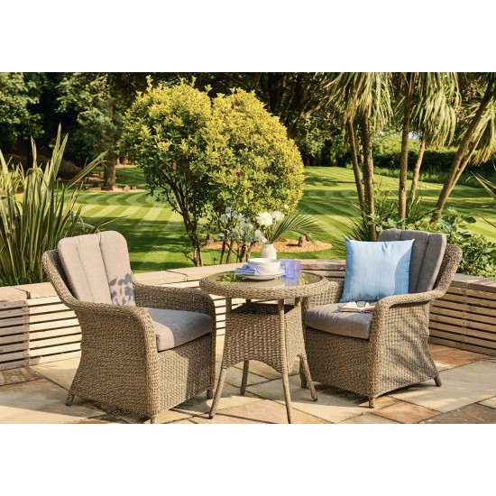 Arlington Weave Bistro Table to elegancki, kompaktowy stolik bistro z ręcznie plecionej, odpornej na warunki atmosferyczne rattanu na lekkiej, proszkowo malowanej aluminiowej ramie. W zestawie znajduje się 1 x Bistro Table – idealny do ogrodu, na patio, balkon lub taras. Stolik ma wymiary: szer. 700 mm × gł. 700 mm × wys. 750 mm i waży 10 kg. Produkt jest odporny na warunki pogodowe i promieniowanie UV, a całość jest objęta 5-letnią gwarancją strukturalną.
