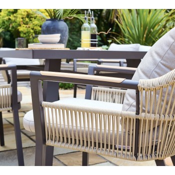 Bali Dining Chair to eleganckie, wytrzymałe krzesło ogrodowe, które łączy nowoczesny styl z praktyczną funkcjonalnością. Dzięki solidnej konstrukcji z antykorozyjnej ramy aluminiowej i hydrophobic rope detailing mebel jest odporny na zmienne warunki pogodowe oraz łatwy w utrzymaniu czystości. Głębokie poduszki dołączone do zestawu zapewniają komfort nawet podczas dłuższych posiłków na świeżym powietrzu. Krzesło waży 4 kg i ma kompaktowe wymiary: szerokość 650 mm, głębokość 630 mm, wysokość 790 mm, co czyni je łatwym do ustawienia wokół stołu lub w dowolnej przestrzeni patio. To rozwiązanie idealne dla osób ceniących elegancję i wygodę – niezależnie od tego, czy organizujesz rodzinny obiad w ogrodzie, czy relaksujesz się przy kawie na balkonie. Produkt objęty jest 3-letnią gwarancją, co świadczy o jakości wykonania i trwałości materiałów. Krzesło Bali doskonale komponuje się z innymi meblami z kolekcji Bali, dzięki czemu możesz stworzyć pełny zestaw jadalniany dla przestrzeni zewnętrznej.